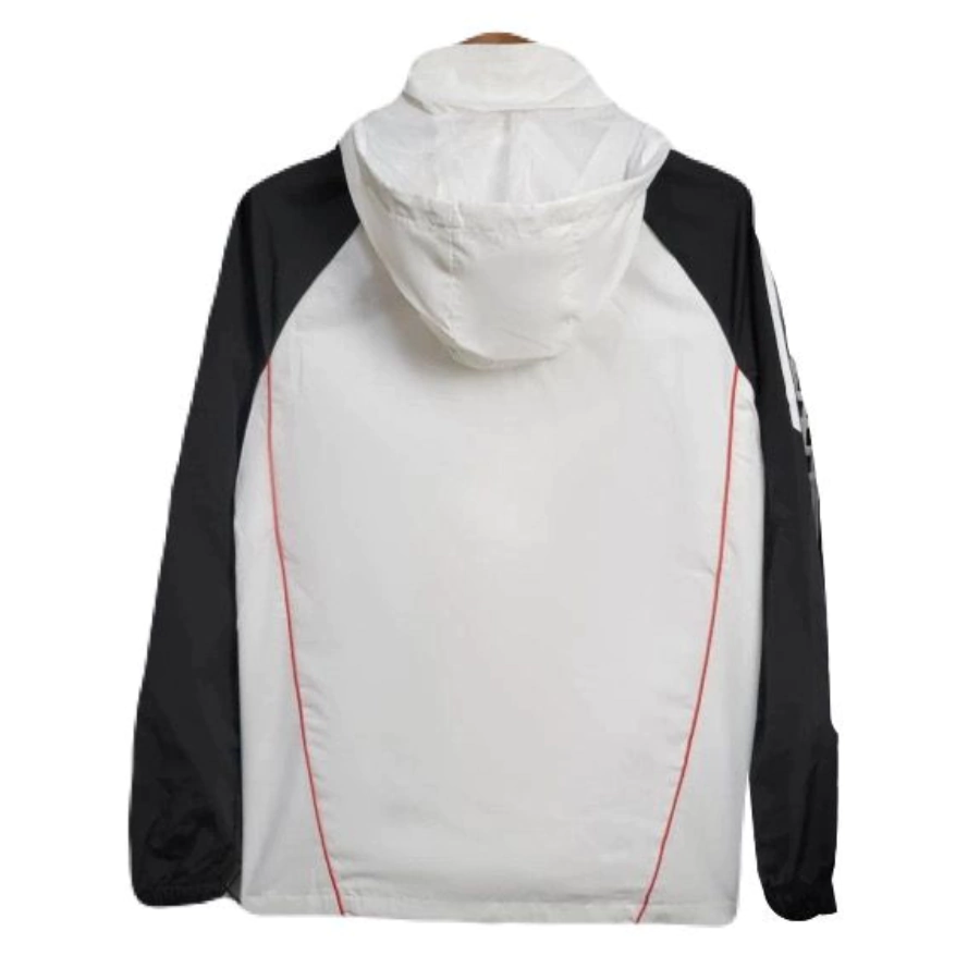 A Jaqueta Corta Vento Manchester United Adidas 25/26 Branca é a escolha perfeita para os torcedores que buscam estilo, conforto e autenticidade. Produzida pela Adidas no padrão oficial, o modelo conta com capuz ajustável, detalhes em preto, zíper frontal e tecido leve, ideal para proteção contra o vento e para compor um visual moderno.