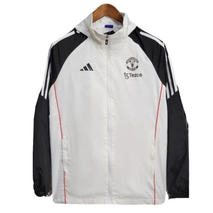 Garanta agora a sua Jaqueta Corta Vento Manchester United Adidas 25/26 Branca com capuz e vista-se com o orgulho e a tradição dos Red Devils. Estoque limitado – adquira já a sua e mostre sua paixão pelo Manchester United em grande estilo!