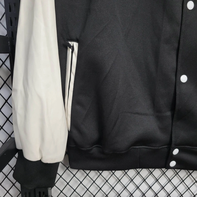 Com tecido resistente, ótimo caimento e acabamento premium, a jaqueta proporciona conforto e durabilidade. Seu visual clássico em preto com mangas brancas combina perfeitamente com diferentes estilos, sendo uma peça versátil e indispensável no guarda-roupa do torcedor.